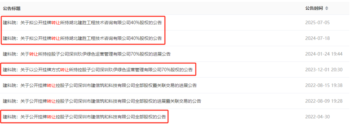 此外,包含本次股权转让在内,2022年以来,建科院已先后4次公开挂牌转让下属子公司股权,以优化公司资产配置。